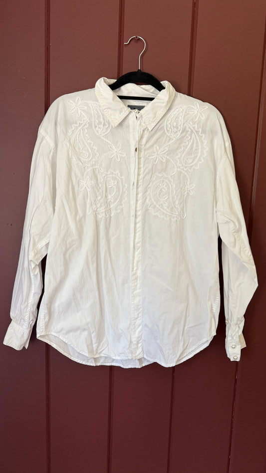 Vintage Liz Wear White Western Button Down with Pearl Buttons (M)
