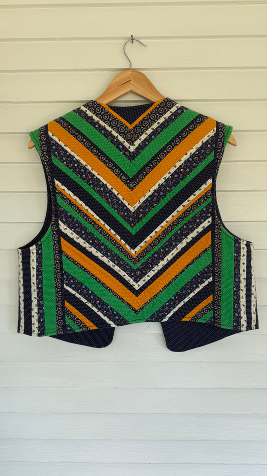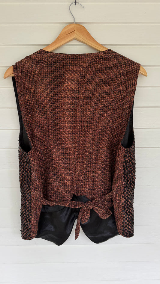 Vintage Handmade Beaded Vest with adjustable tie in back (L)