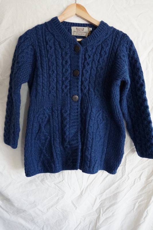 Super Soft Luxury Aran Sweater Market Flared Aran Cardigan in Inky Blue (M)