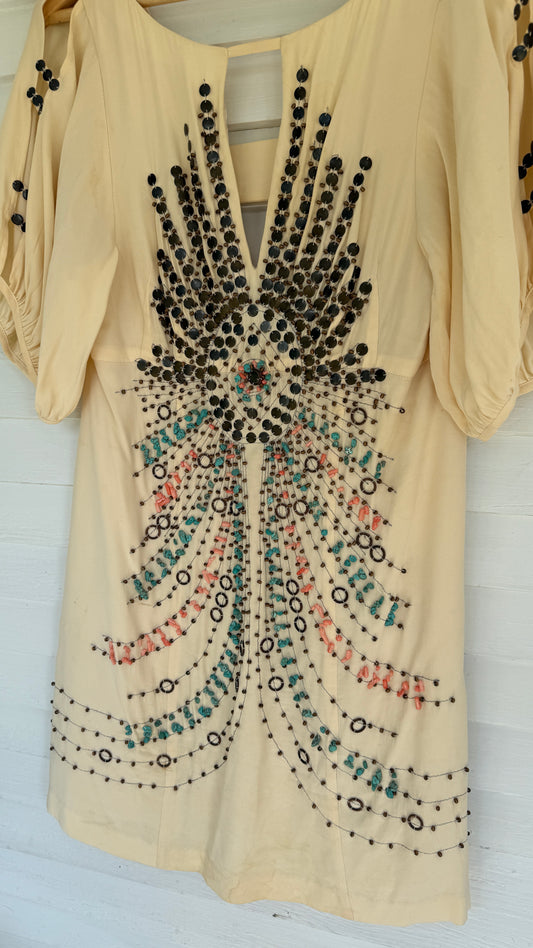 Silk Cold-Shoulder Beaded Mini Dress (8)
