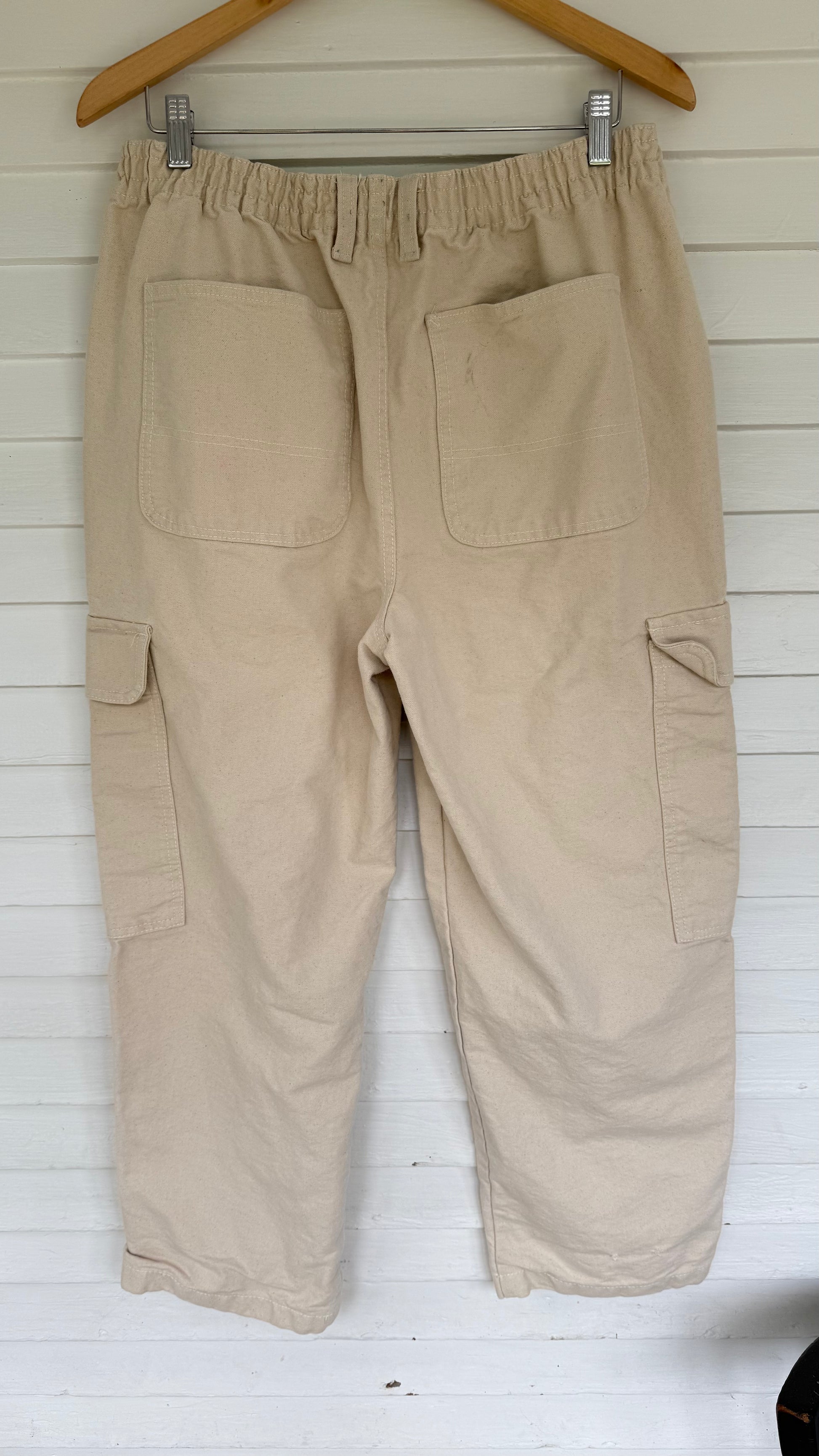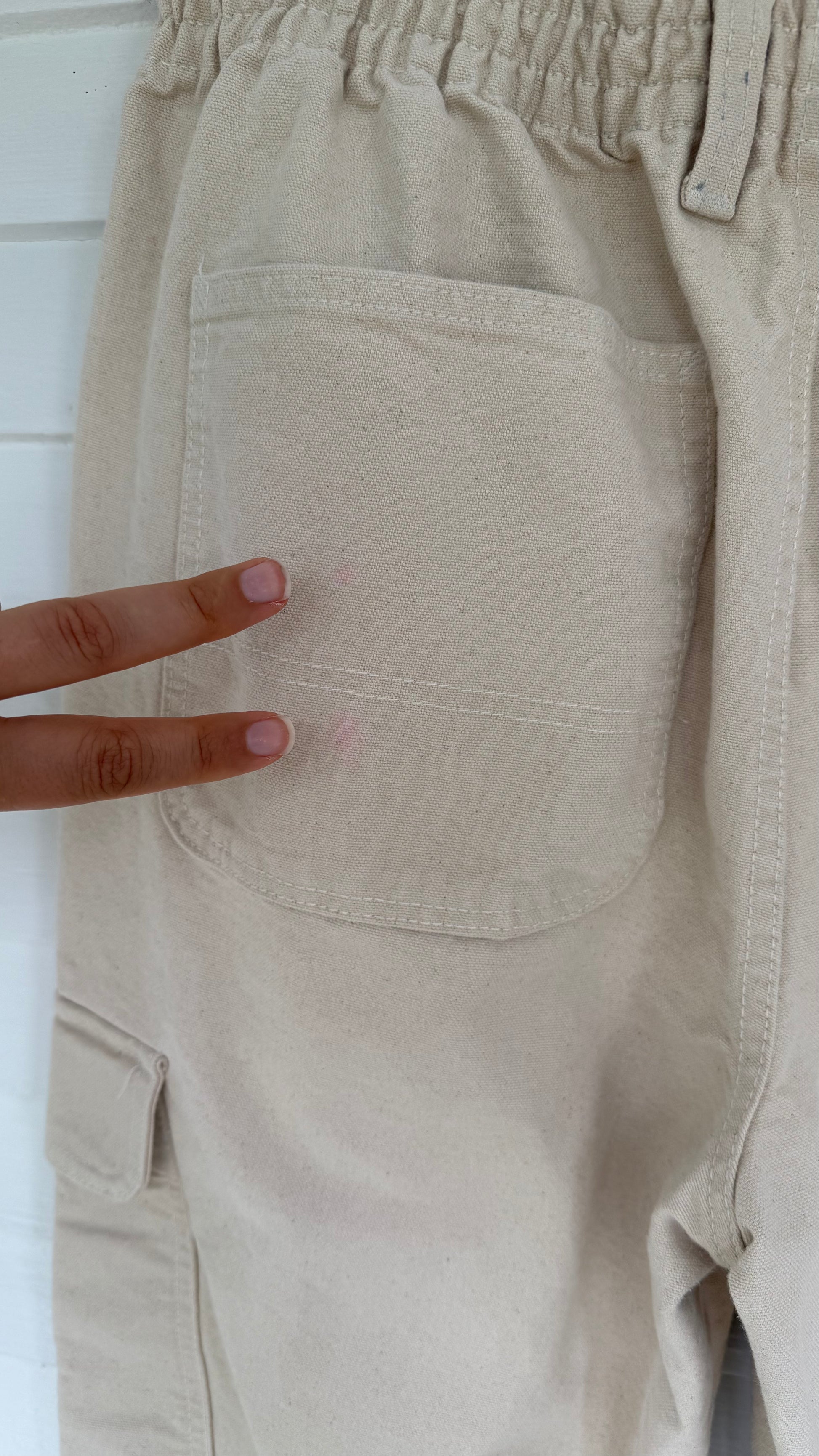 Details: Thick, canvas-like feel. The perfect elevated casual pant to pair with a chunky sweater or tee. PLEASE NOTE: there are faint pink spots on the back pockets. See last 2 photos!