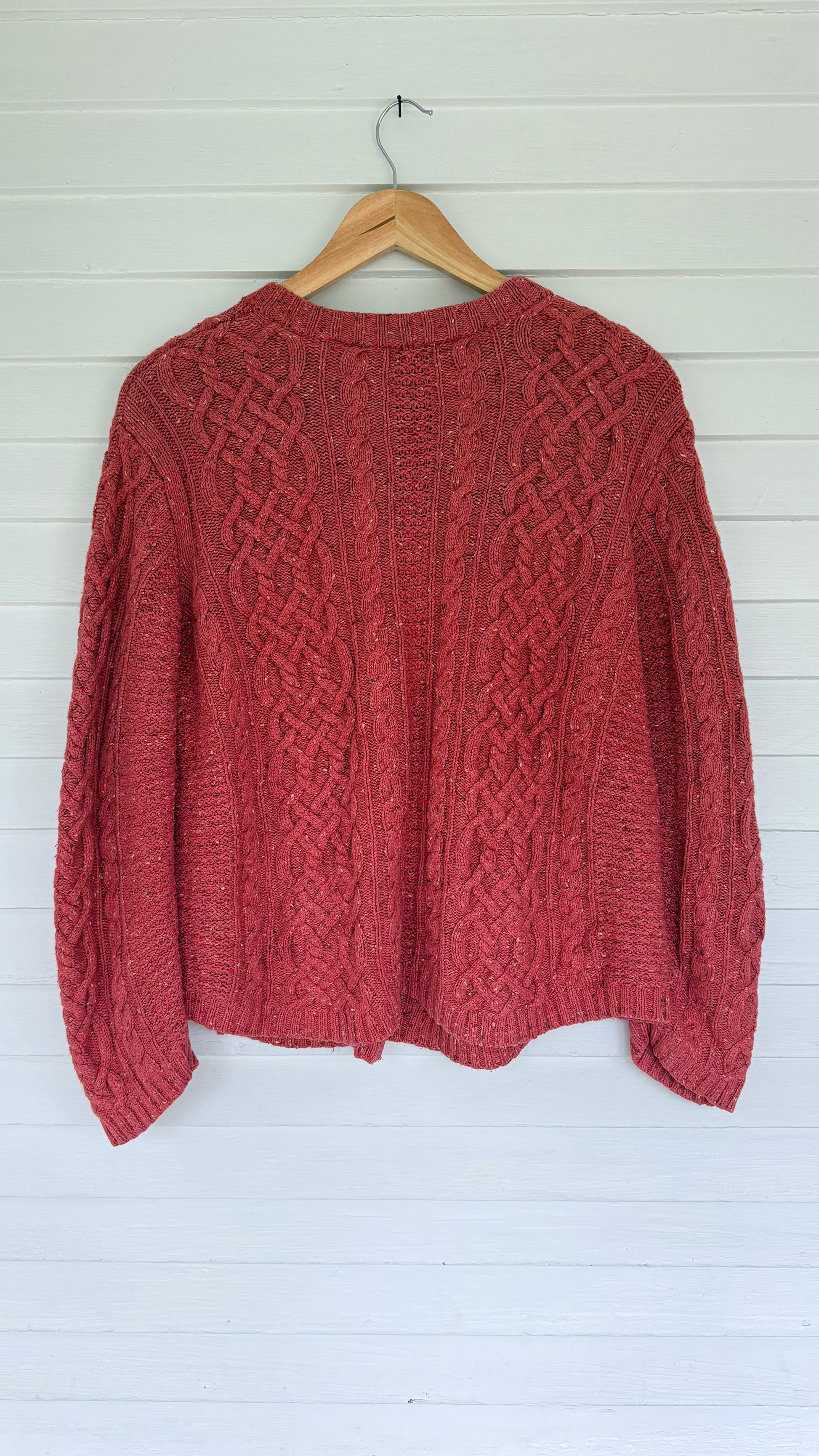 Vintge Silk/Wool Blend Zip Up Cableknit Cardigan (XL)